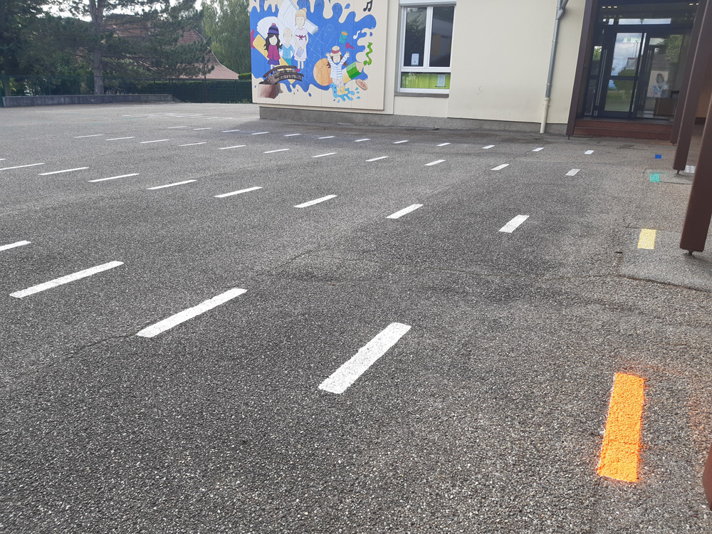 Des passages protégés à Offenheim ont été repeints, et des totems en forme de crayon ont été posés (rue du Noyer vers l’école).